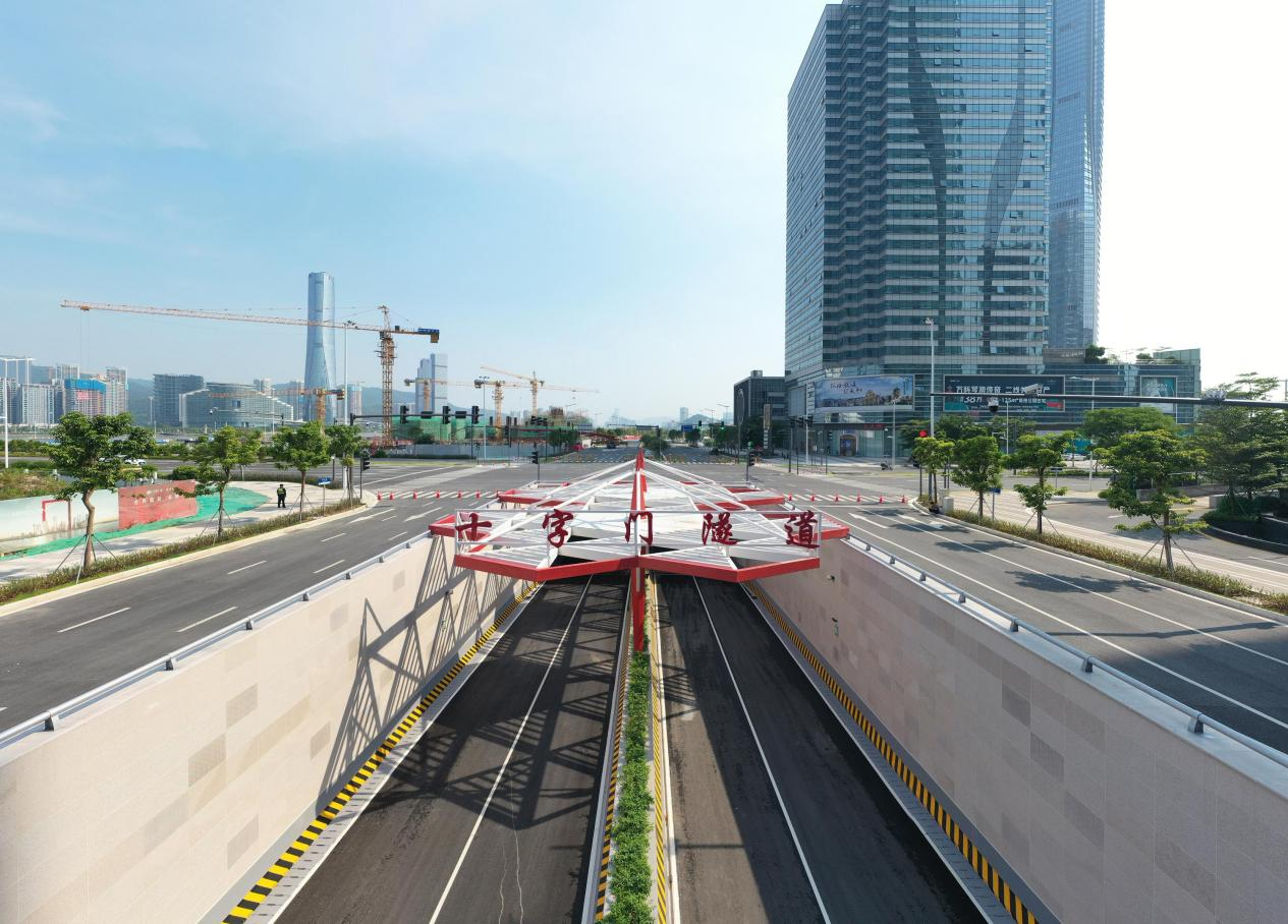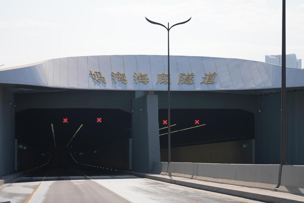 媽灣跨海通道是深圳首條海底隧道,連接深圳的前海和大鏟灣港區,全長約8.05千米,最大開挖直徑15.5m,是目前國內海底最大直徑盾構隧道。自今年1月20日通車以後,該通道成為深圳西部重要疏港通道,可以實現前海片區的客貨分離和過境分離,在提升周邊港口貨運效率的同時,減少貨運對城市交通和環境的干擾,推動前海區域交通優化與城市功能整合。圖為媽灣跨海通道。