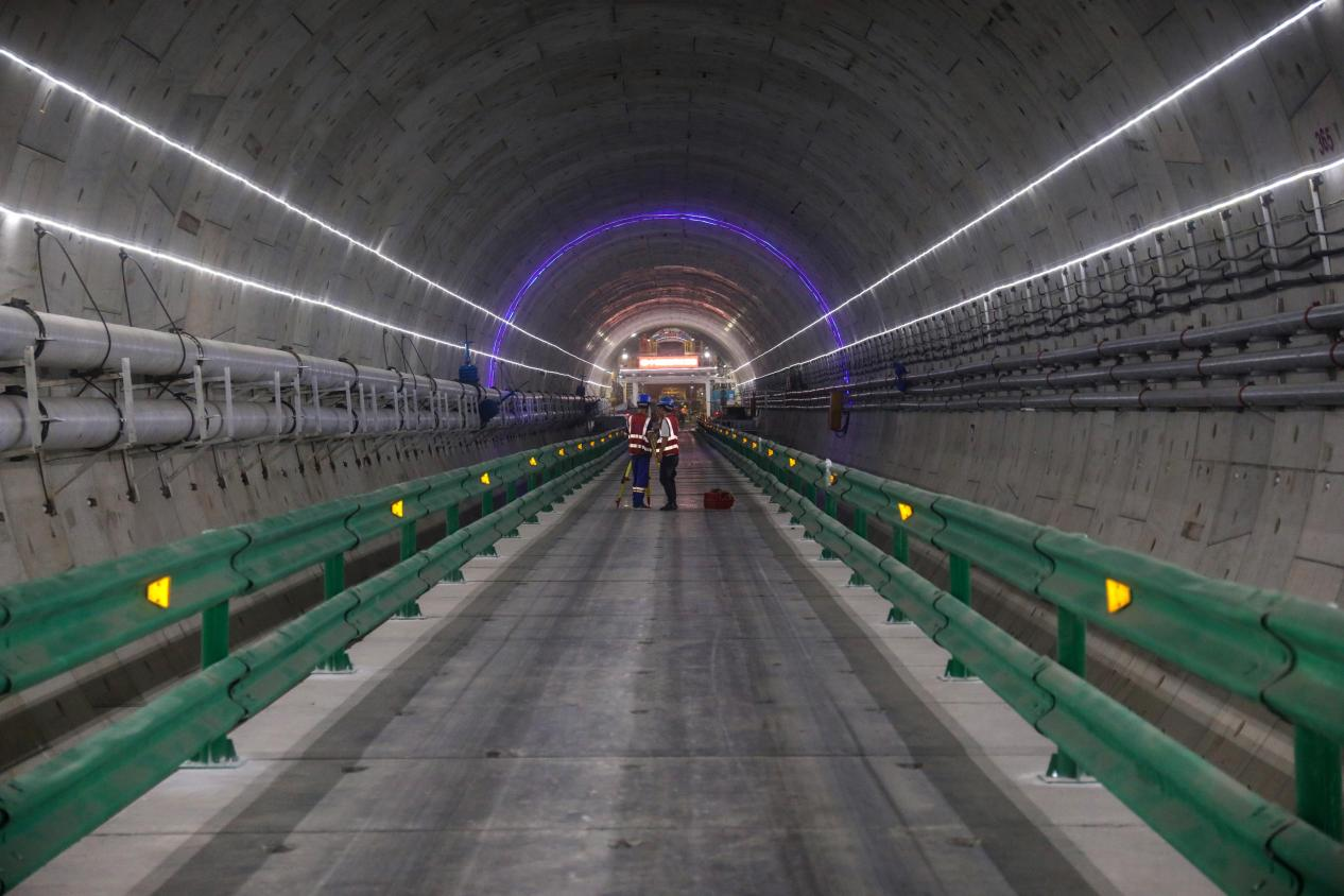 珠海隧道是華南地區首次採用大直徑盾構技術建設的雙向六車道海底隧道,平行於珠海大橋南側,與珠海大橋形成「上橋下隧」的格局,設計雙向六車道,全長約5公里。該隧道計劃於2025年12月通車,駕車通過僅需5分鐘,將極大緩解珠海大橋的交通壓力,將加速人才、物流、資金等要素流動,助力珠海西部産業園區與東部金融、科創中心的聯動發展。圖為在建的珠海海底隧道工程。