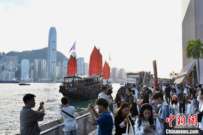 2024年10月,市民、游客在香港尖沙咀星光大道一帶游玩。 中新社記者 李志華 攝