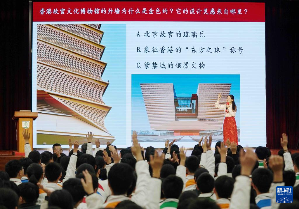 「同學們,你們知道香港故宮文化博物館的外墻為什麼是金色的嗎?」在香港培僑中學的禮堂裏,前來授課的人大附中分校教師高維陽拋出問題,課堂氣氛活躍了起來。