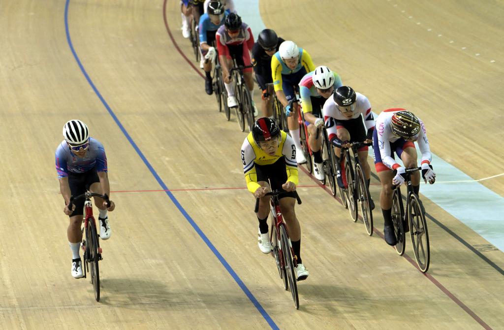 4月21日,2025香港國際場地杯暨第十五屆全運會場地自行車測試賽在香港將軍澳自行車館舉行。新華社發(盧炳輝攝)