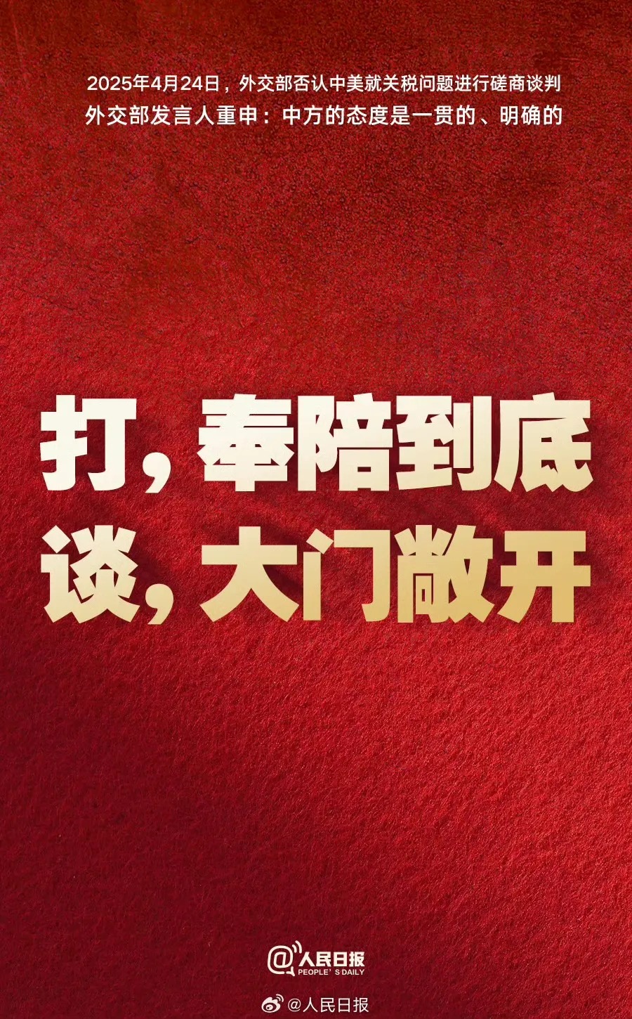 我們一開始就強調「不願打,但也不怕打」,重申「談,大門敞開;打,奉陪到底」,展現了不畏霸權、捍衛公道的堅強意志;