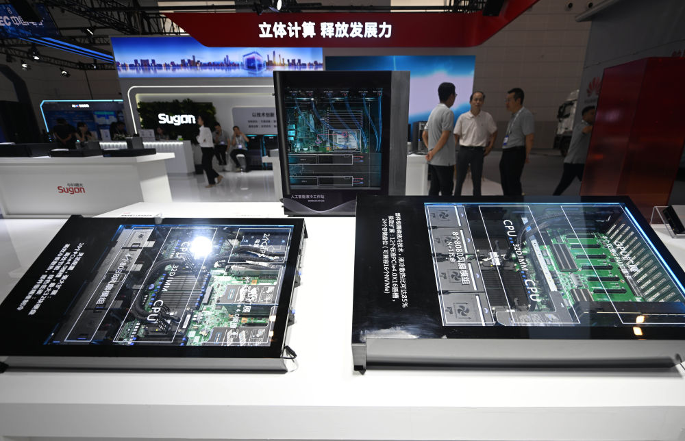 這是2024年6月20日在2024世界智能産業博覽會上拍攝的中科曙光展區的一台人工智能服務器。