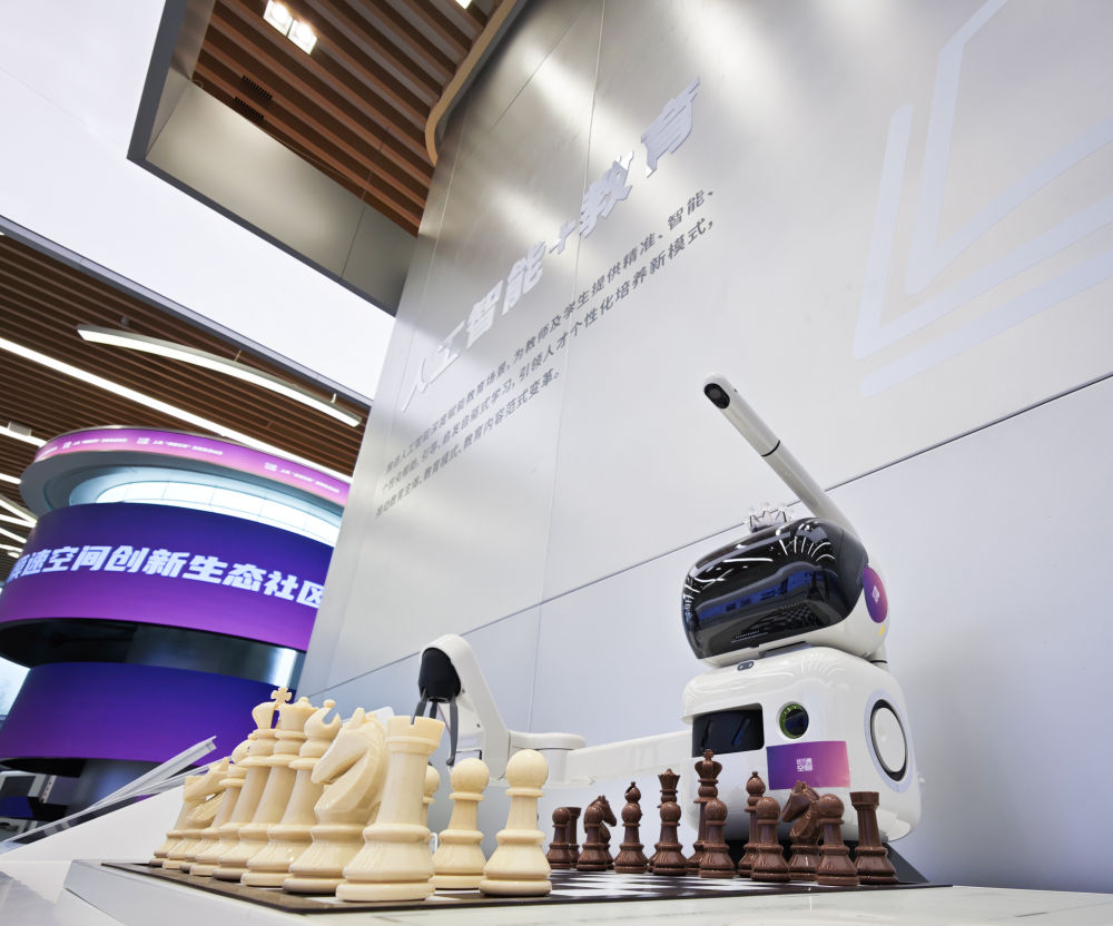 這是在「模速空間」展示的一款AI下棋機器人,可以提供實現對弈、AI打譜等多項功能(2025年4月29日攝)。