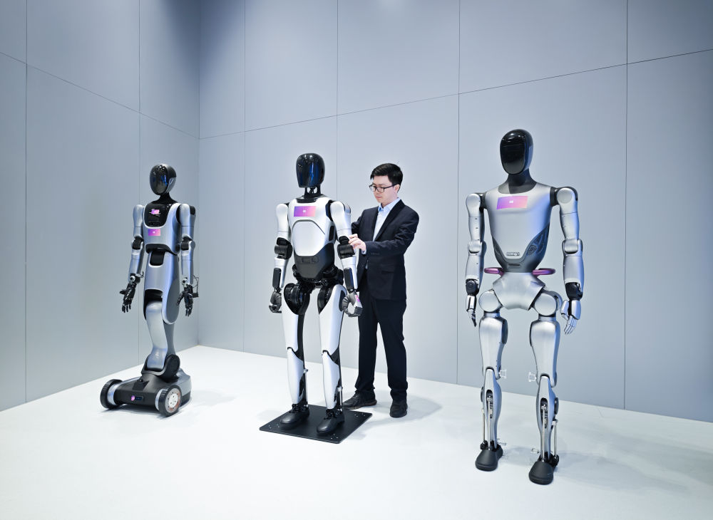 2025年4月29日,工作人員在「模速空間」調試人形機器人産品。
