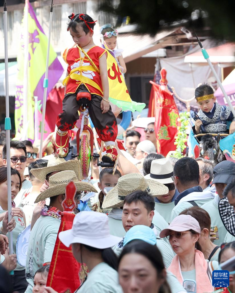 5月5日,李智偉負責製作的「哪吒」主題飄色在巡游隊伍中。新華社發