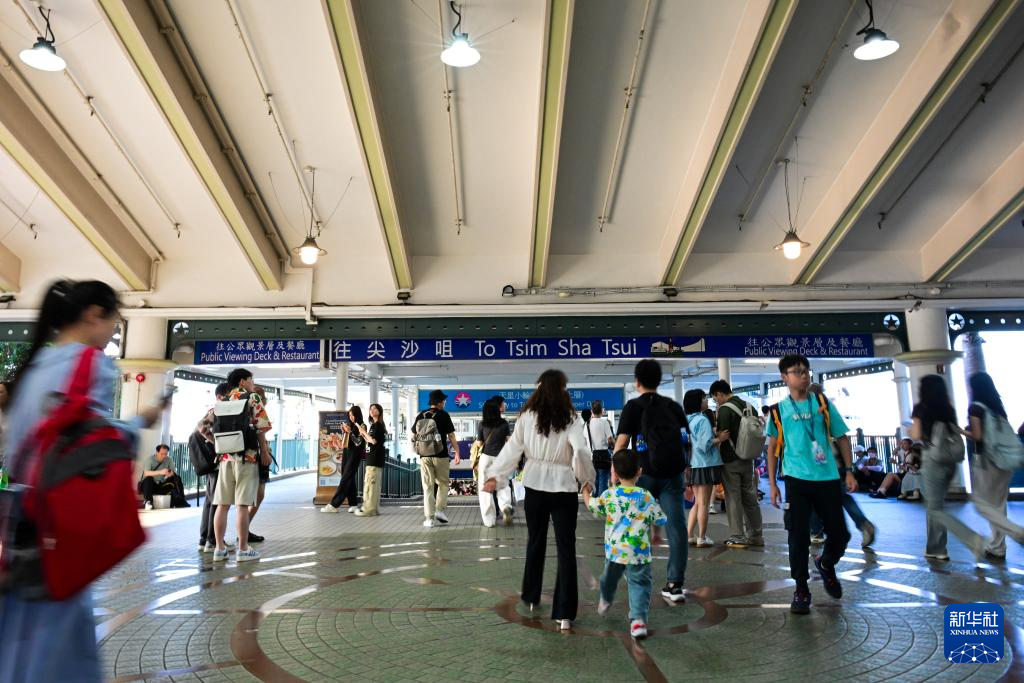 5月2日,游客和市民在香港中環碼頭準備乘坐天星小輪。新華社記者 朱煒 攝
