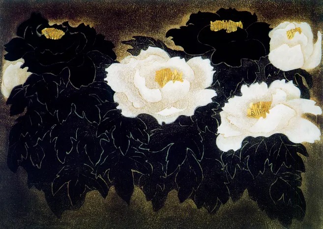 《黑牡丹、白牡丹》 / 鄭爽 版畫 / 56×74cm / 1984年 廣東美術館藏