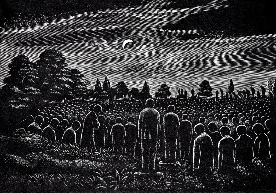 《魯迅先生葬禮》 / 黃新波 版畫 / 26×36cm / 1936年 廣東美術館藏