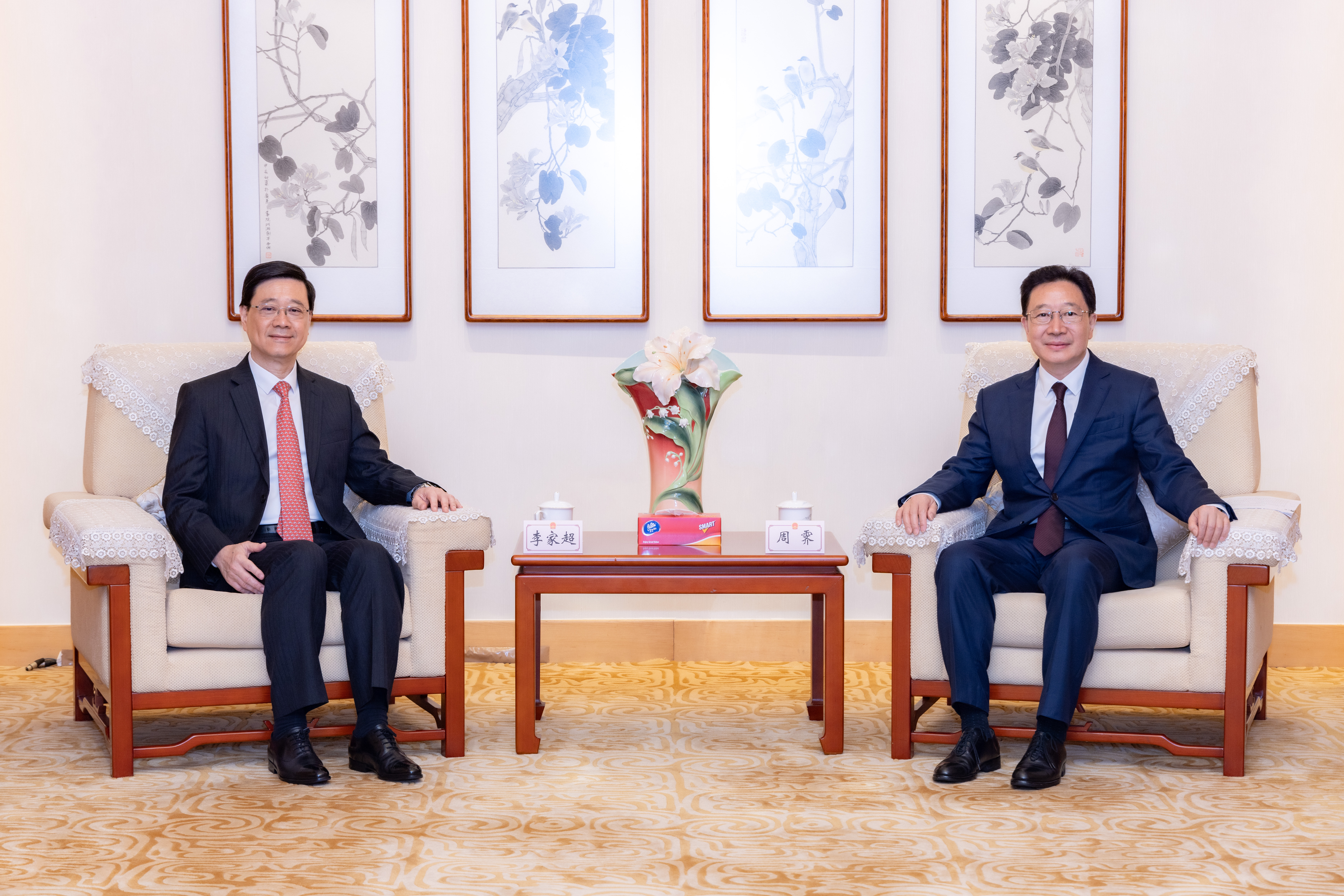 周霽主任會見李家超行政長官。(圖片來源:中央政府駐港聯絡辦)