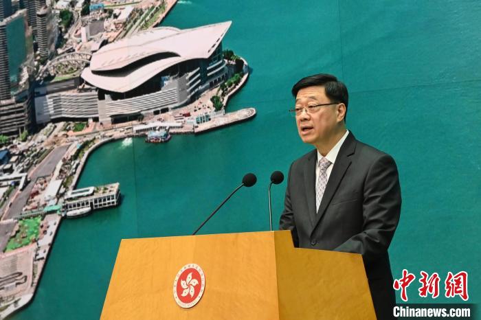 6月10日,香港特區行政長官李家超出席行政會議前會見媒體時表示,今年「七一」回歸祖國28周年紀念日,香港將舉辦百餘項活動慶祝。中新社記者 李志華 攝