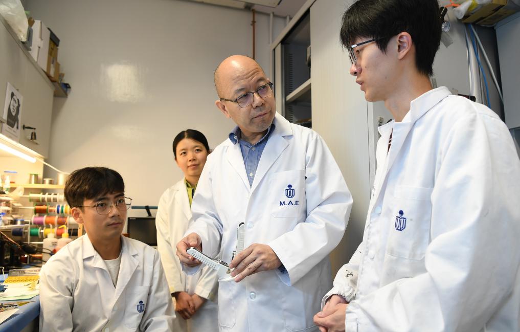 6月19日,香港太空機械人與能源中心聯合主任于宏宇教授(右二)在實驗室與團隊成員交流。新華社記者 陳鐸 攝