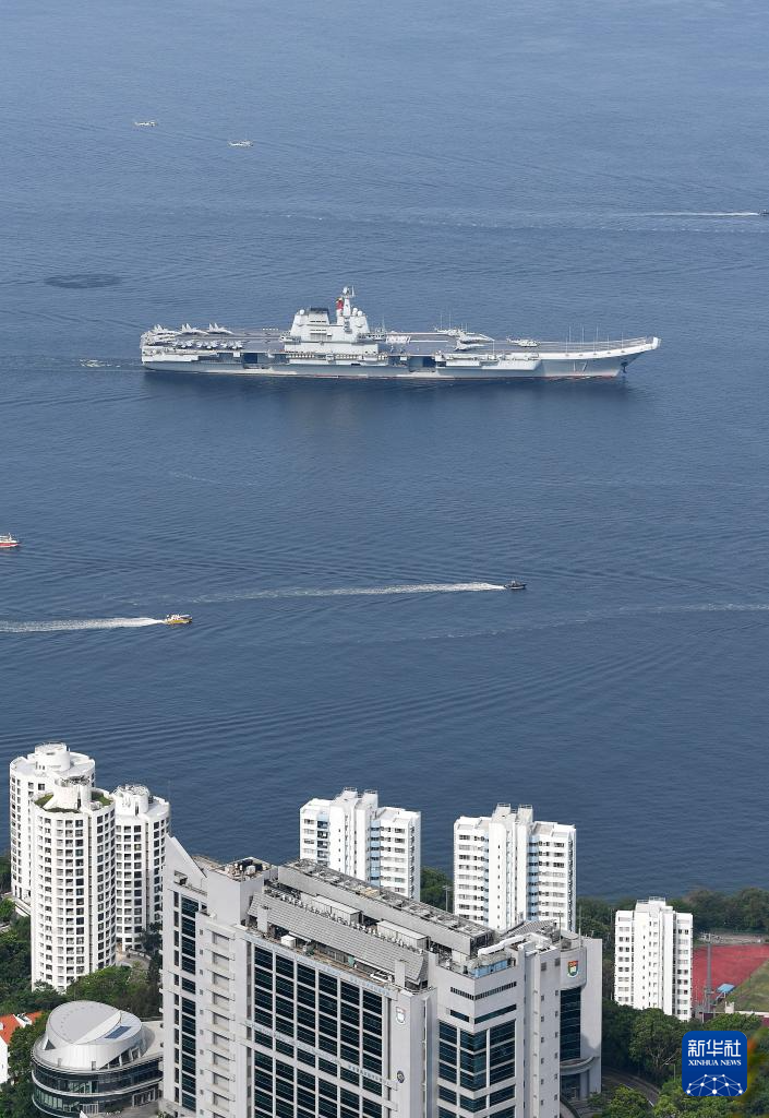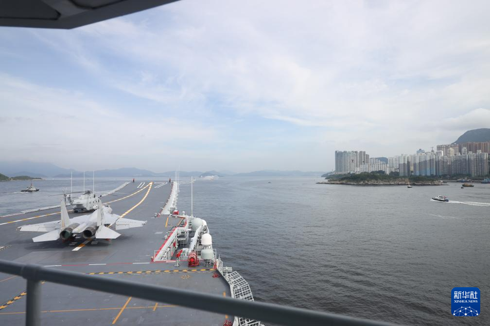 7月3日,中國海軍山東艦航母編隊抵達香港。這是山東艦行進在香港水域。新華社記者 朱煒 攝