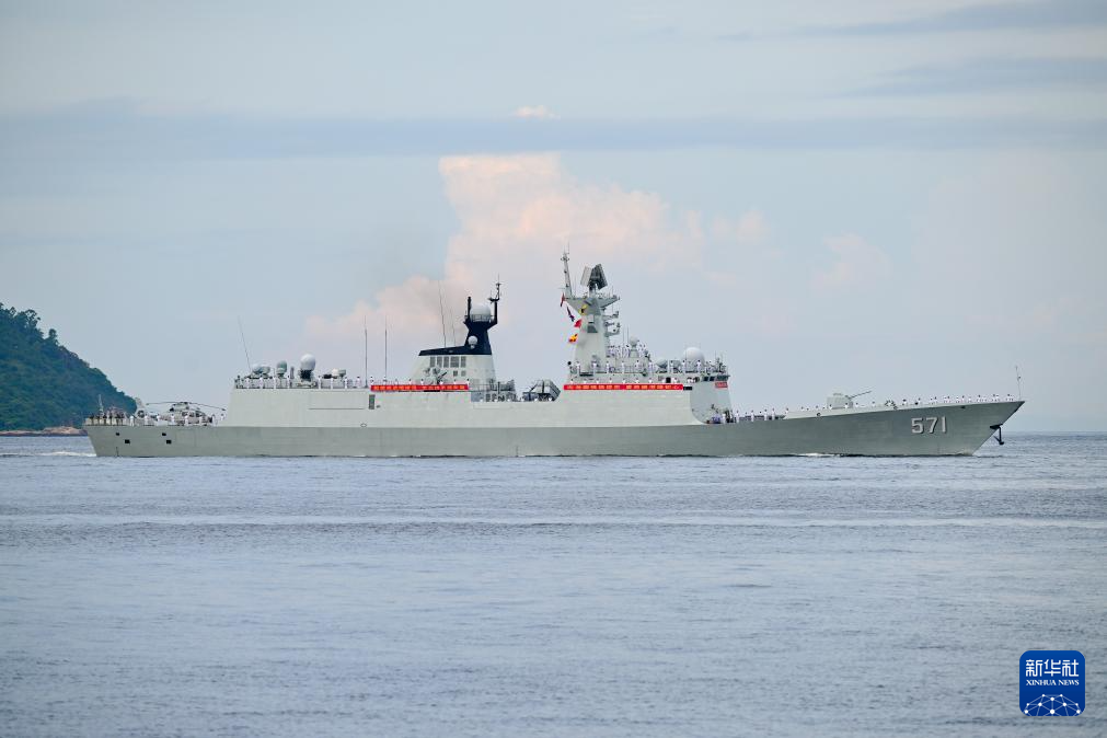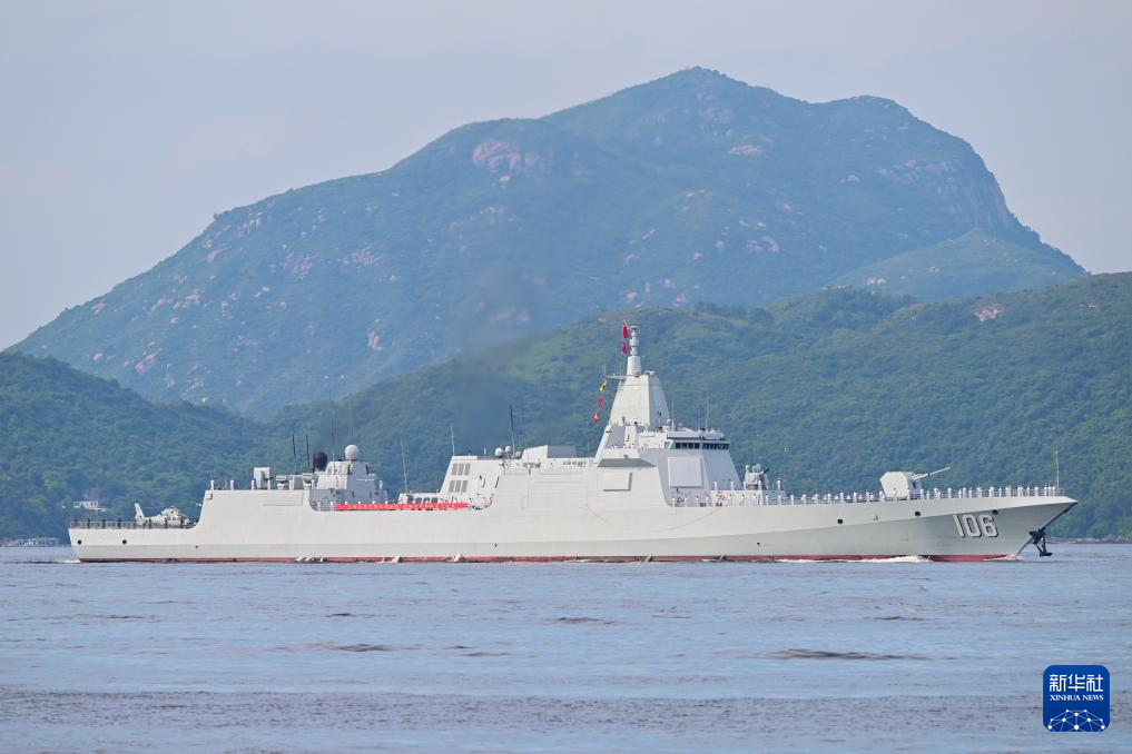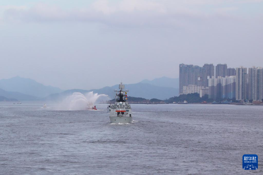 7月3日,海軍湛江艦行進在香港水域。新華社記者 朱煒 攝
