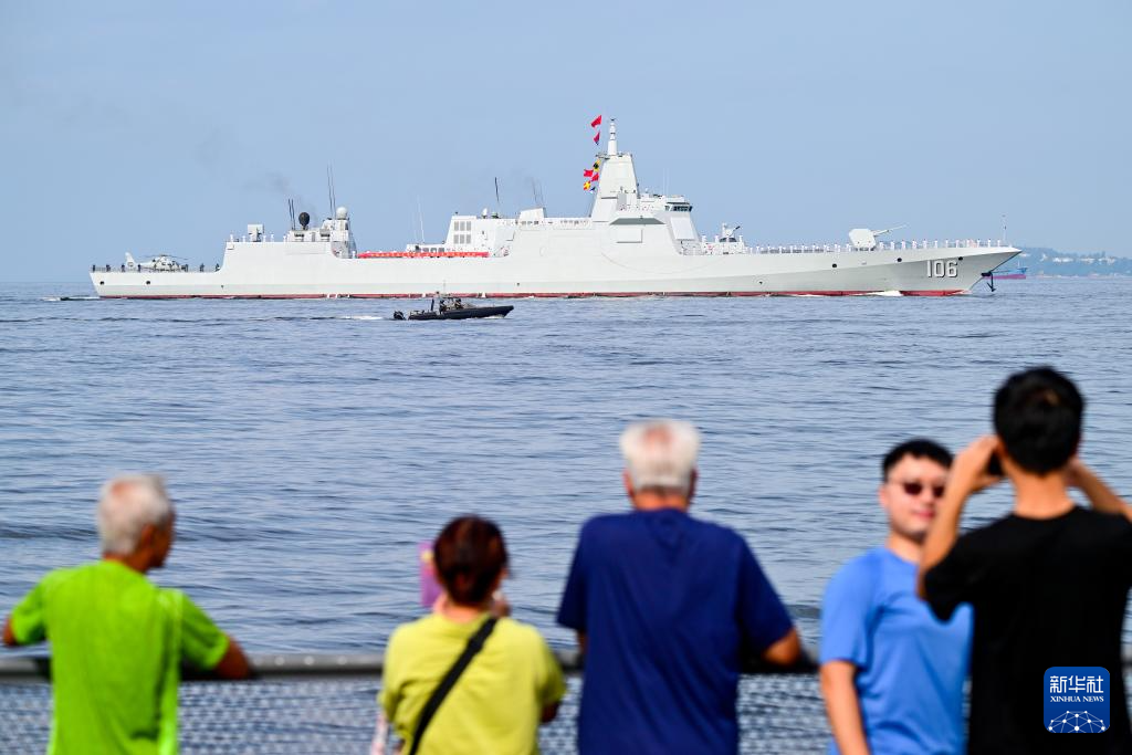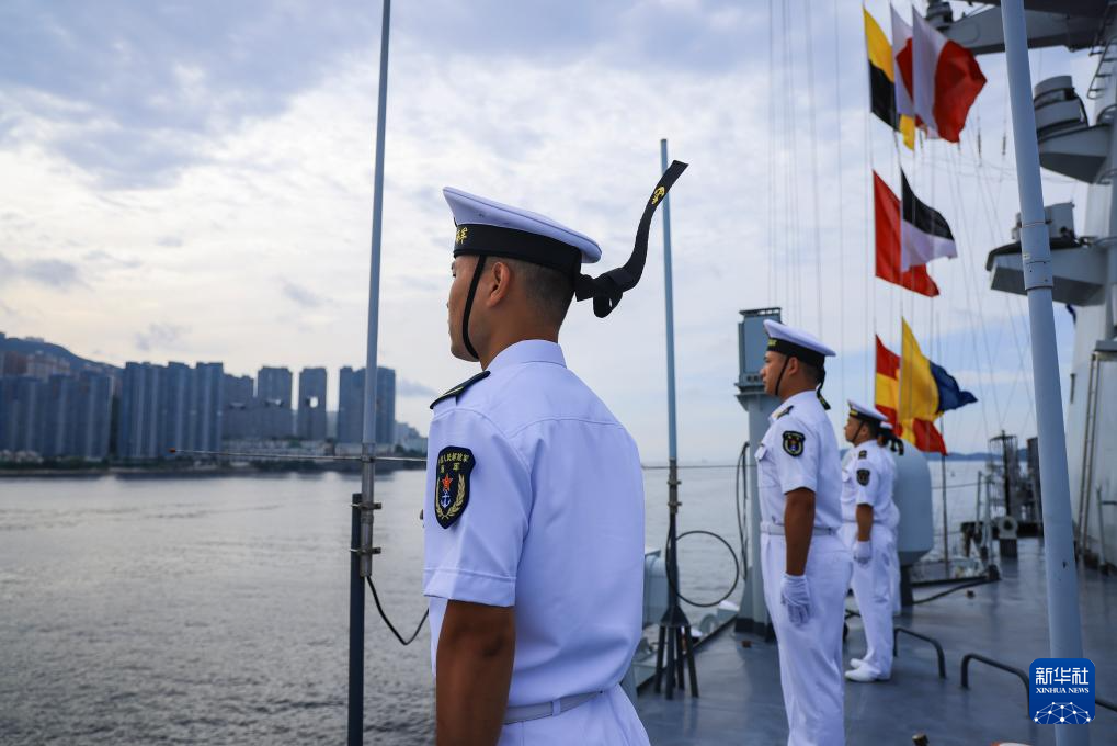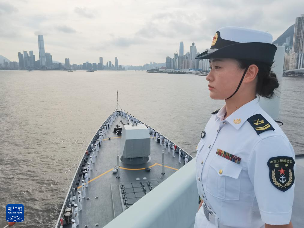 近了,近了,「東方之珠」的輪廓逐漸清晰。700 餘名海軍官兵分區列隊,站立舷旁,向前來歡迎的人群揮手致意。二級軍士長齊正坤給區隊的年輕人介紹:這是金紫荊廣場,這是香港第一高樓環球貿易廣場,那是中環,遠處的制高點是太平山。
