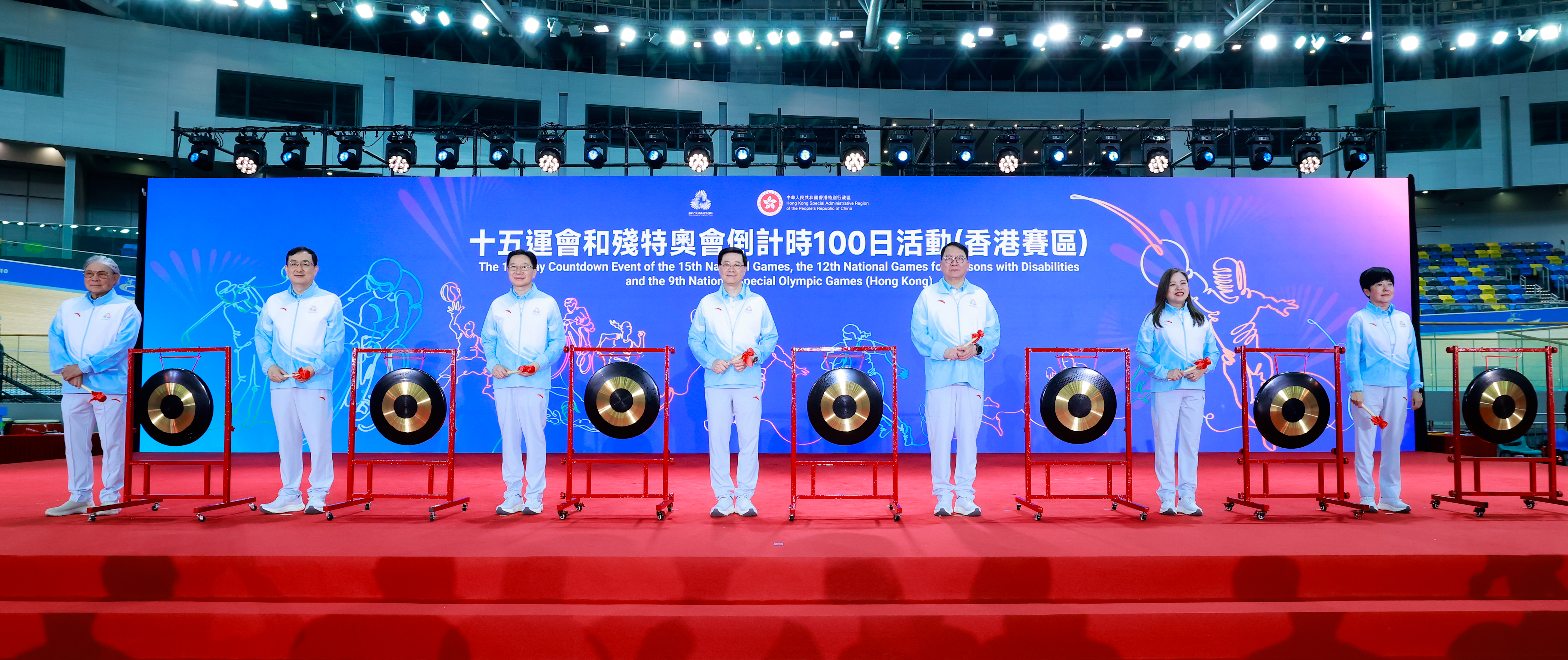 本網訊 8月2日,第十五屆全國運動會和全國第十二屆殘疾人運動會暨第九屆特殊奧林匹克運動會倒計時100日活動(香港賽區)在香港單車館舉行。香港特別行政區行政長官李家超、中央政府駐港聯絡辦主任周霽出席。