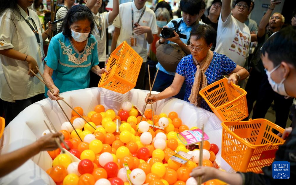 8月14日,觀眾在第35屆美食博覽上參加互動游戲。新華社發(呂小煒 攝)