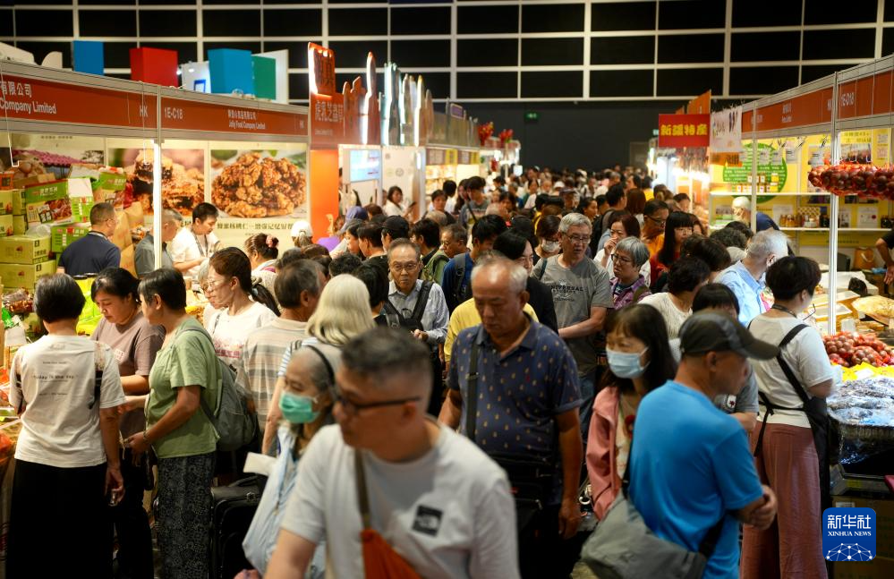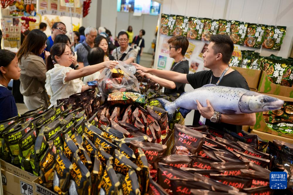 8月14日,觀眾在第35屆美食博覽上選購商品。新華社發(呂小煒 攝)