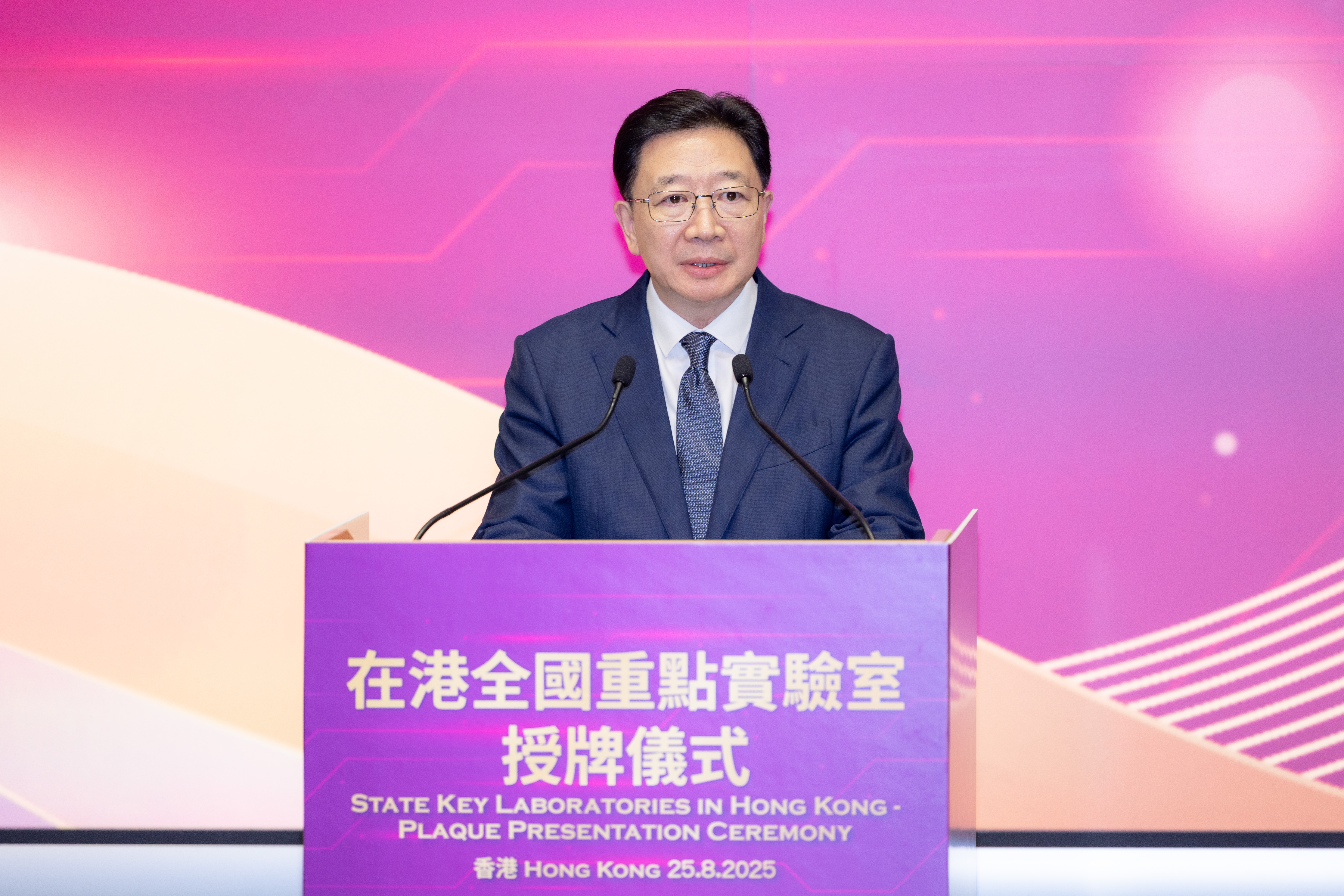 本網訊 8月25日,香港特區政府舉辦在港全國重點實驗室授牌儀式。行政長官李家超、科技部部長陰和俊、中央政府駐港聯絡辦主任周霽出席並致辭。