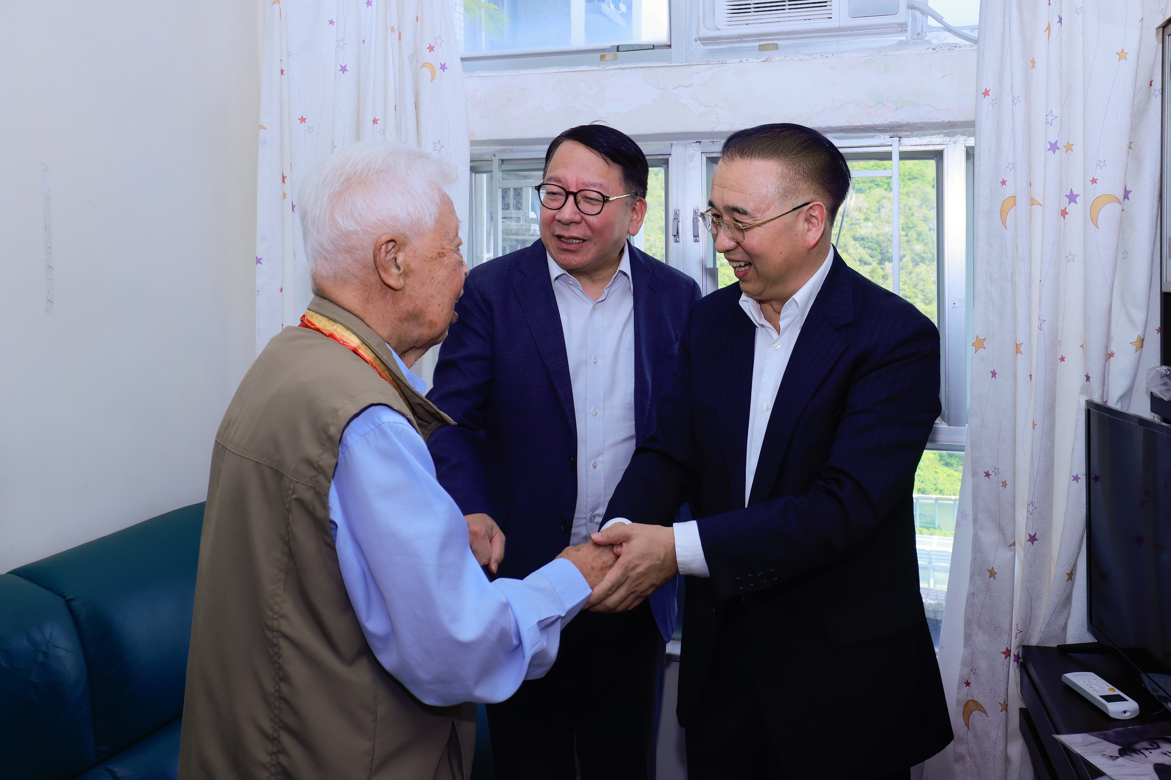慰問老戰士羅競輝。(圖片來源:中央政府駐港聯絡辦)