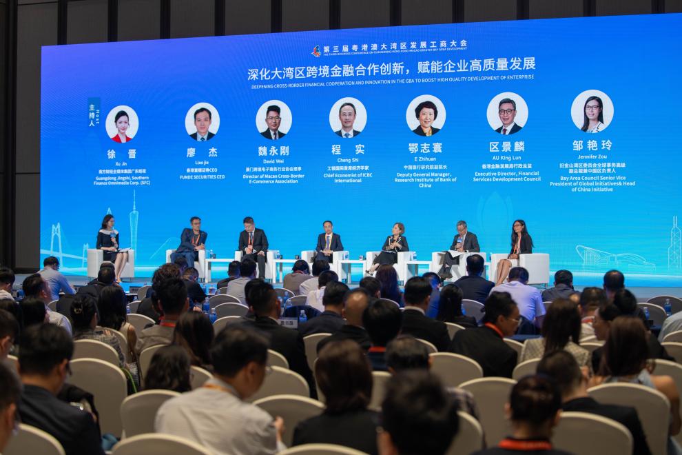 這是9月15日拍攝的第三屆粵港澳大灣區發展工商大會「平行專題研討一:粵港澳大灣區跨境金融合作」的現場。新華社記者 肖恩楠 攝