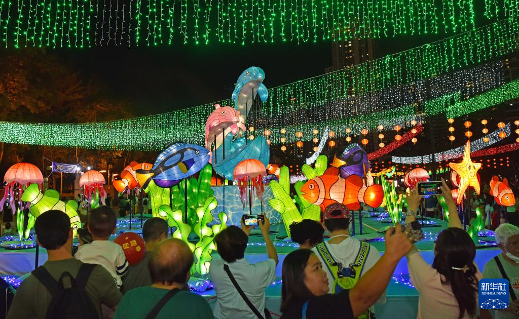 花好月圓夜,一年中秋至。農曆八月十五傍晚,一輪明月升起,香港維多利亞公園的綵燈亮起,忙碌了一天的香港市民開啟中秋假期,一幅熱鬧的中秋圖景徐徐展開。