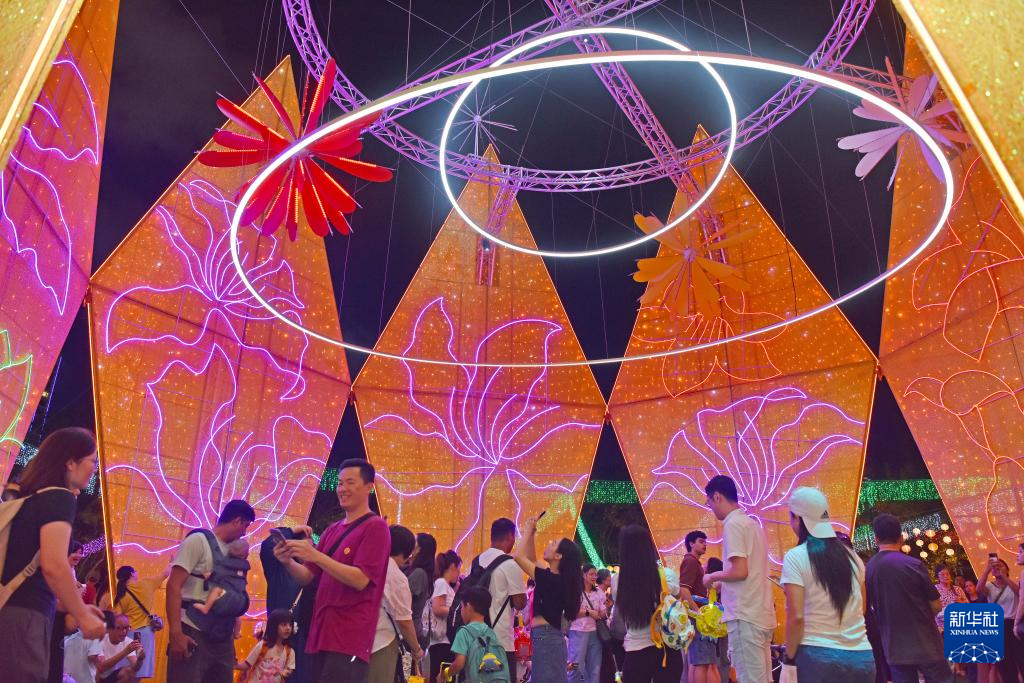 10月6日,市民在香港維多利亞公園欣賞中秋綵燈。新華社記者 陳鐸 攝