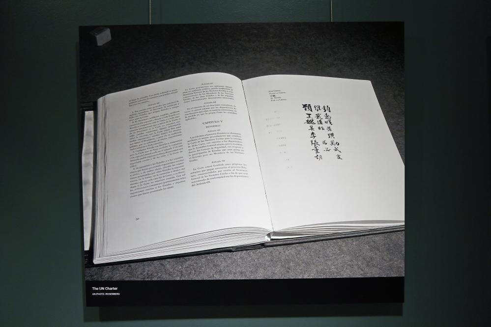 這是9月18日在位於紐約的聯合國總部拍攝的「重振舊金山精神」展覽的《聯合國憲章》。 新華社記者 李睿 攝