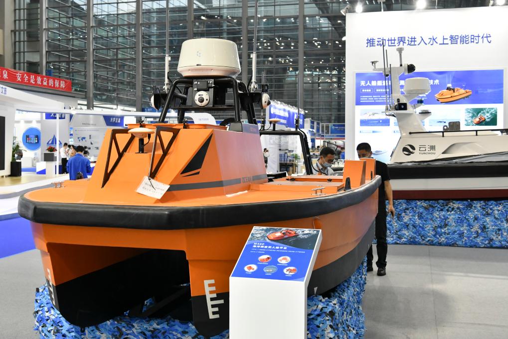 2022年11月24日,觀眾在海博會現場了解雲洲無人船。新華社記者 梁旭 攝
