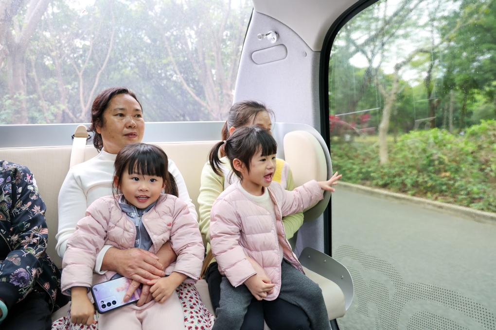 2024年12月27日,人們在深圳蓮花山公園裏乘坐無人駕駛觀光車。新華社記者 梁旭 攝