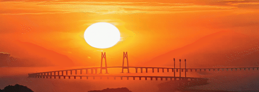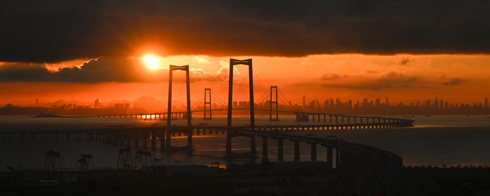 2025年9月14日,深中通道與初升的朝陽交相輝映。新華社記者 鄧華 攝