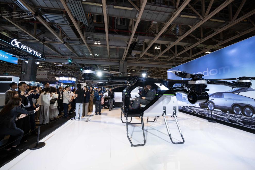 2025年5月22日,與會者在第五屆BEYOND國際科技創新博覽會小鵬匯天展位上參觀。新華社發(張金加攝)