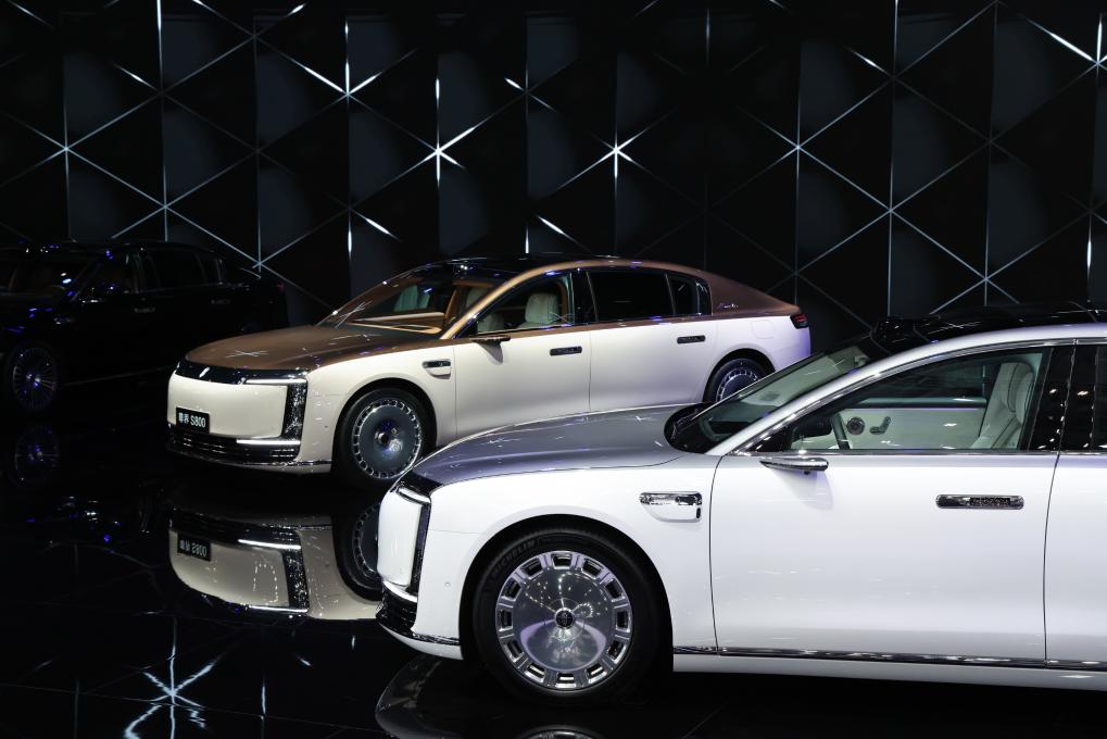 2025年5月31日在2025粵港澳大灣區車展上的鴻蒙智行展台拍攝的尊界S800。新華社記者 梁旭 攝