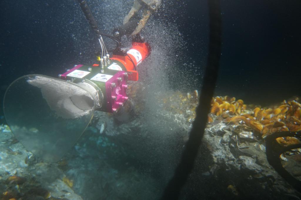 採火裝置在海底冷泉噴口採集可燃冰(2025年9月18日攝)。新華社發(廣州海洋地質調查局供圖)