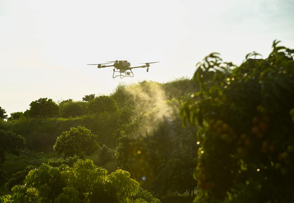 2024年6月21日,大疆農業植保機在廣州增城的荔枝林進行噴灑作業。新華社記者 毛思倩 攝