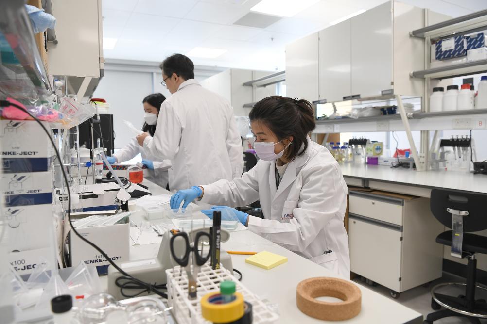 2023年3月3日,工作人員在香港科學園生物醫藥科技培育計劃 (Incu-Bio) 共享實驗室工作。新華社記者 陳鐸 攝