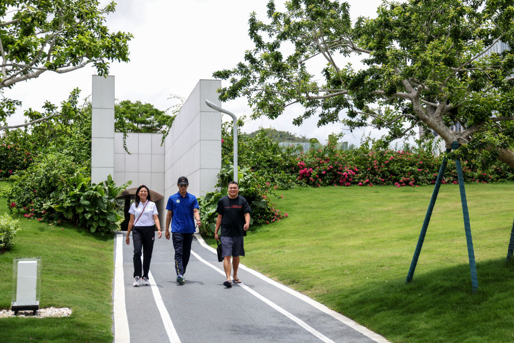 ↑2025年6月21日,天沐賽艇會的合夥人湯少文、朱銘琨和陳志鵬(由左至右)走在賽艇公園內。新華社記者 毛思倩 攝