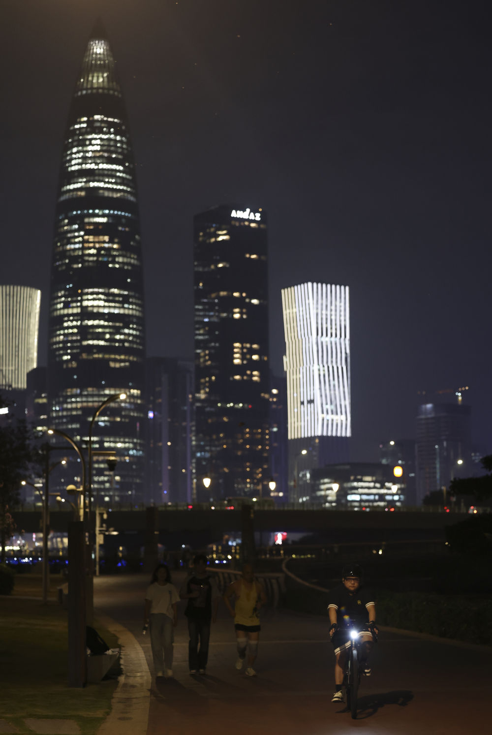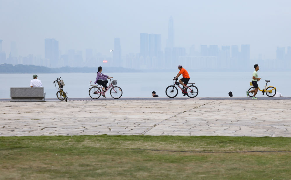 ↑2025年10月24日,市民在深圳前海騎行。新華社記者 梁旭 攝