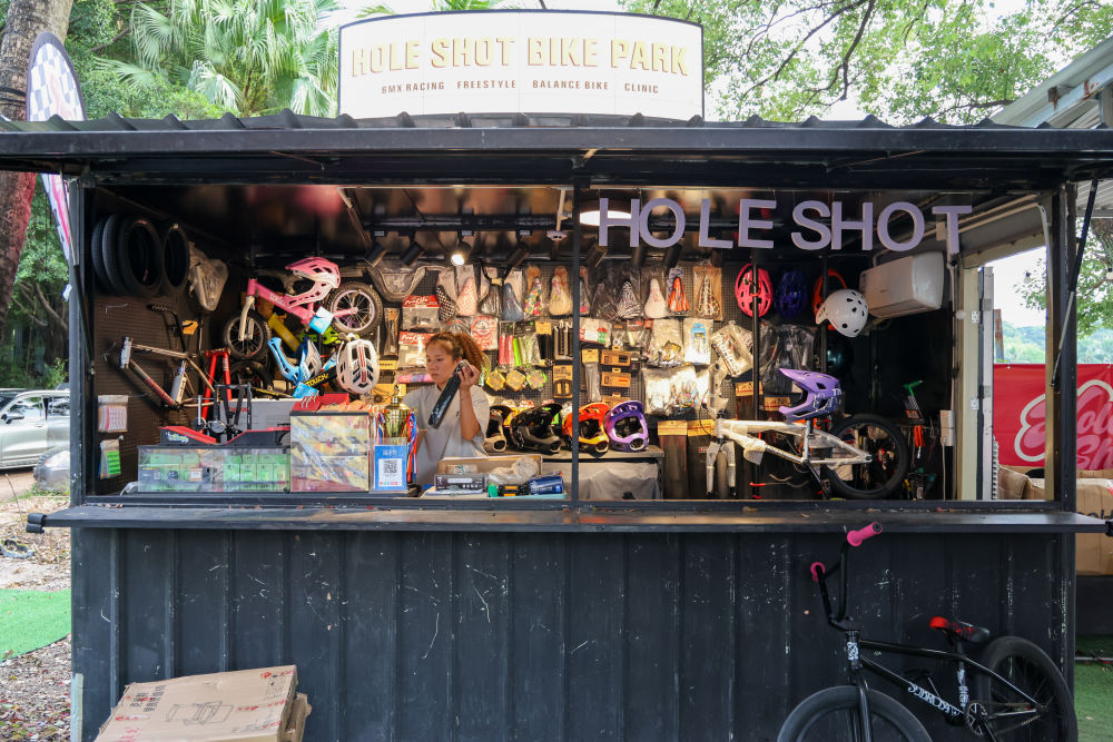 ↑2025年10月31日,黃蘊瑤在位於深圳福田區的HOLE SHOT騎行公園裏工作。新華社記者 梁旭 攝