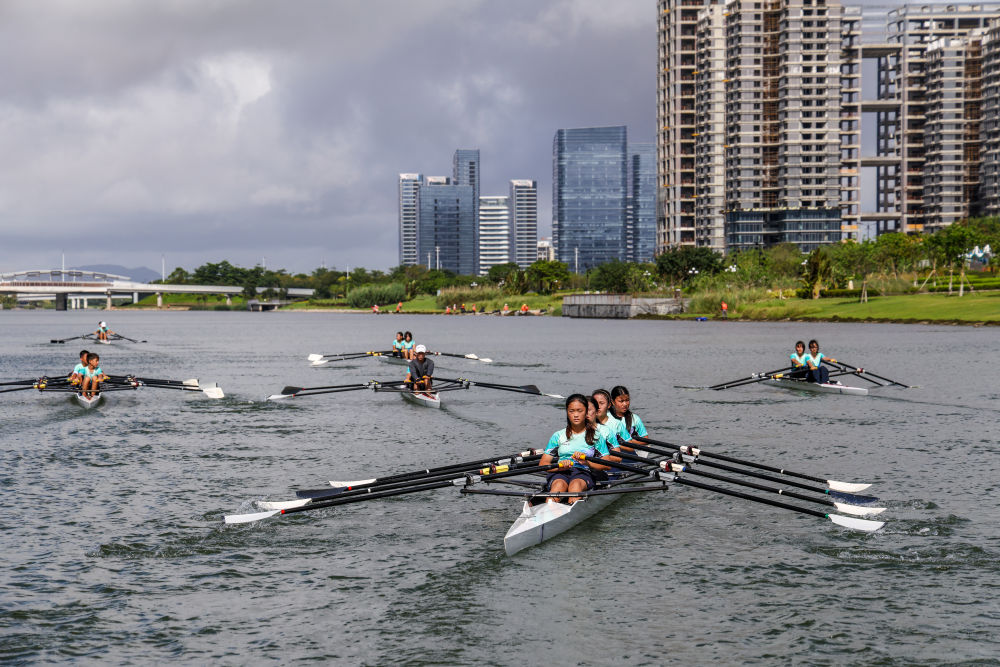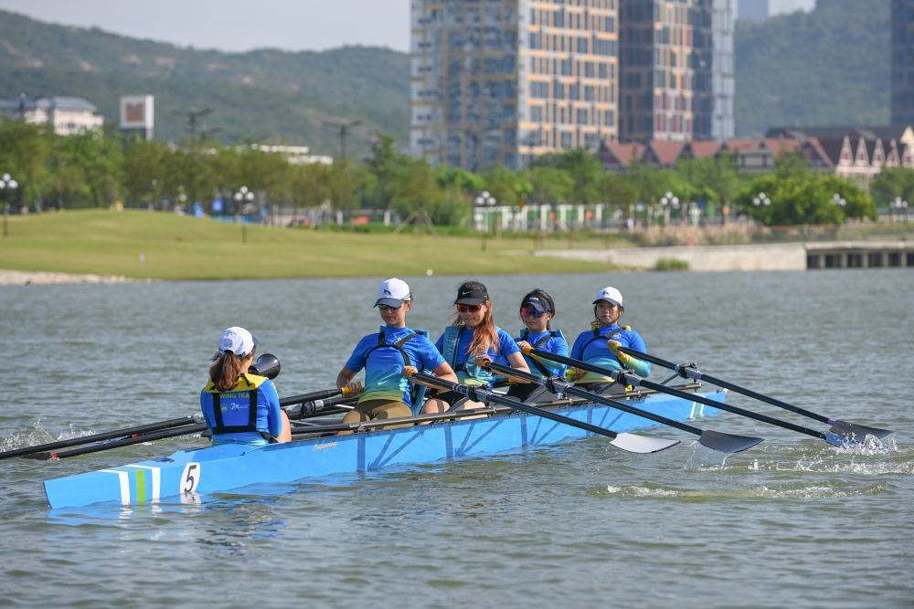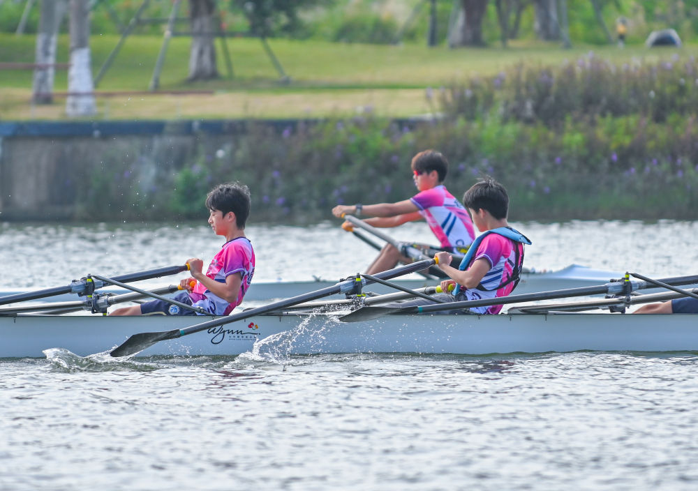 ↑2025年6月21日,學員們在天沐河上進行賽艇訓練。新華社記者 毛思倩 攝