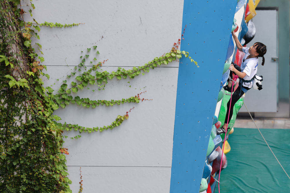 ↑這是2025年6月21日拍攝的在深圳福田區呢度有家攀岩館,何芊芊正在進行難度攀岩訓練。新華社記者 梁旭 攝