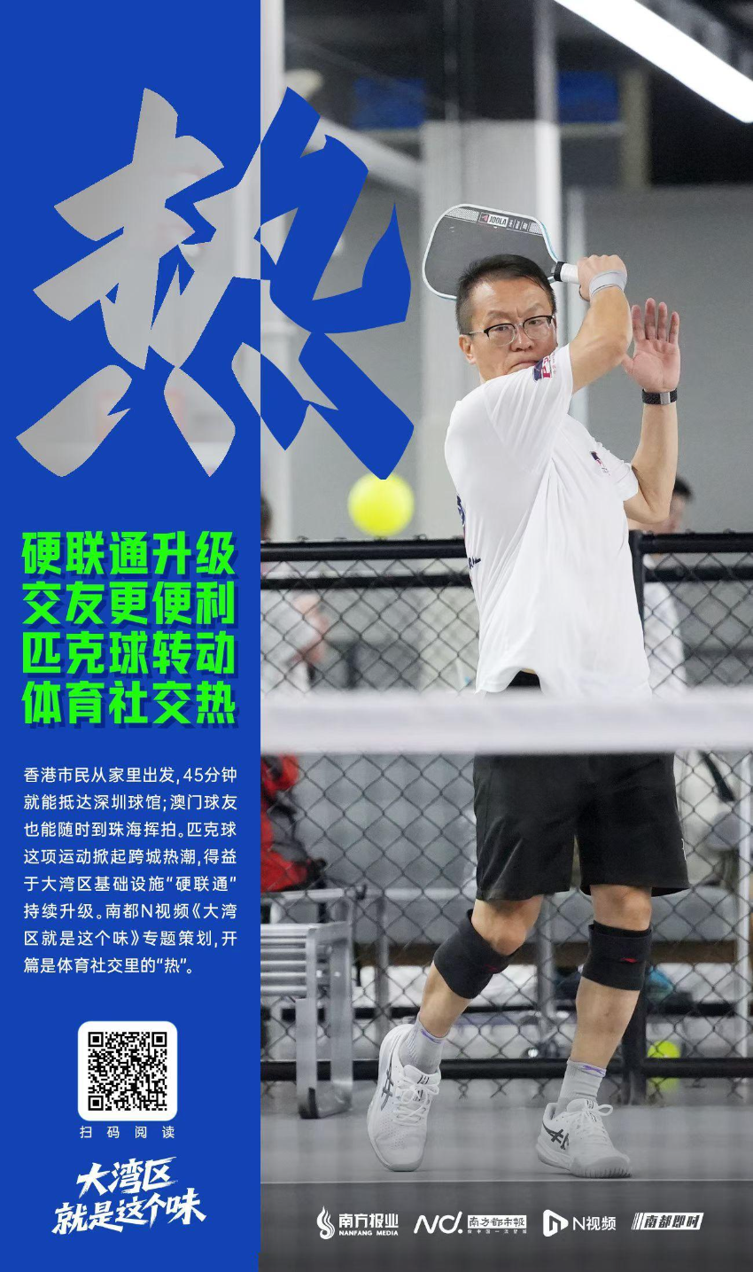 中國第一家匹克球行業協會——深圳匹克球協會創始會長曾國標説,「大灣區的匹克球協會之間聯動頻繁,匹克球作為媒介推動了粵港澳之間的人文交流。」匹克球運動之「熱」,正是得益於粵港澳大灣區基礎設施「硬聯通」的持續升級。