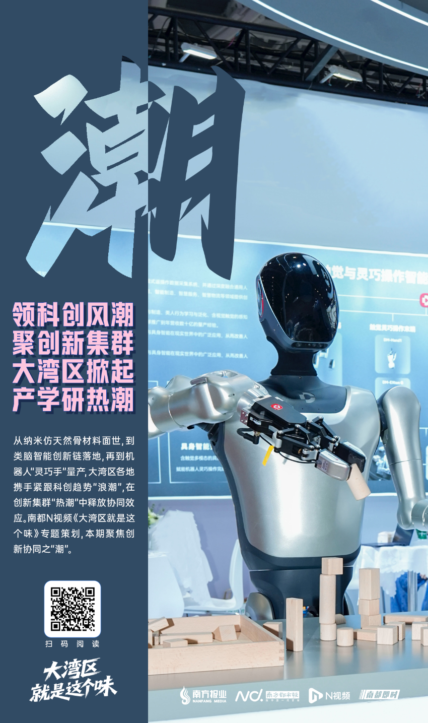 粵港澳三地各有所長、優勢互補。「十四五」時期,大灣區深化創新合作,構建開放型融合發展的區域協同創新共同體。在機器人、類腦智能、醫療材料等前沿領域,三地科技創新與産業創新同頻共振,成果不斷。