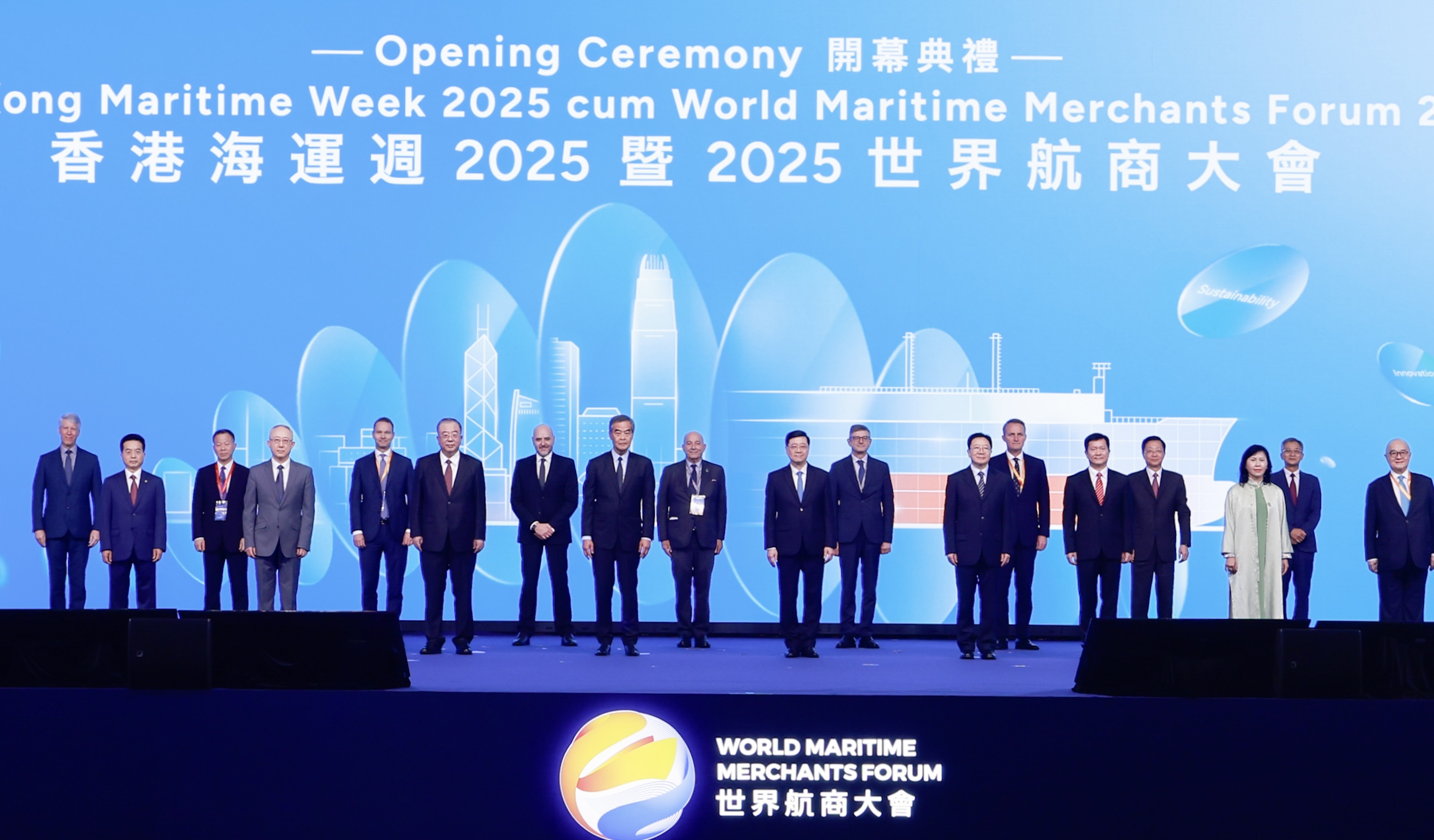 本網訊 11月17日,2025世界航商大會在港舉行。全國政協副主席梁振英、香港特別行政區行政長官李家超出席並致辭。中央政府駐港聯絡辦主任周霽出席。
