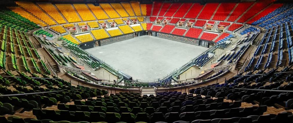 香港紅磡體育館內景(2024年12月6日攝)。第十五屆全國運動會籃球男子22歲以下組比賽在這裏舉行。新華社發(香港康文署供圖供圖)