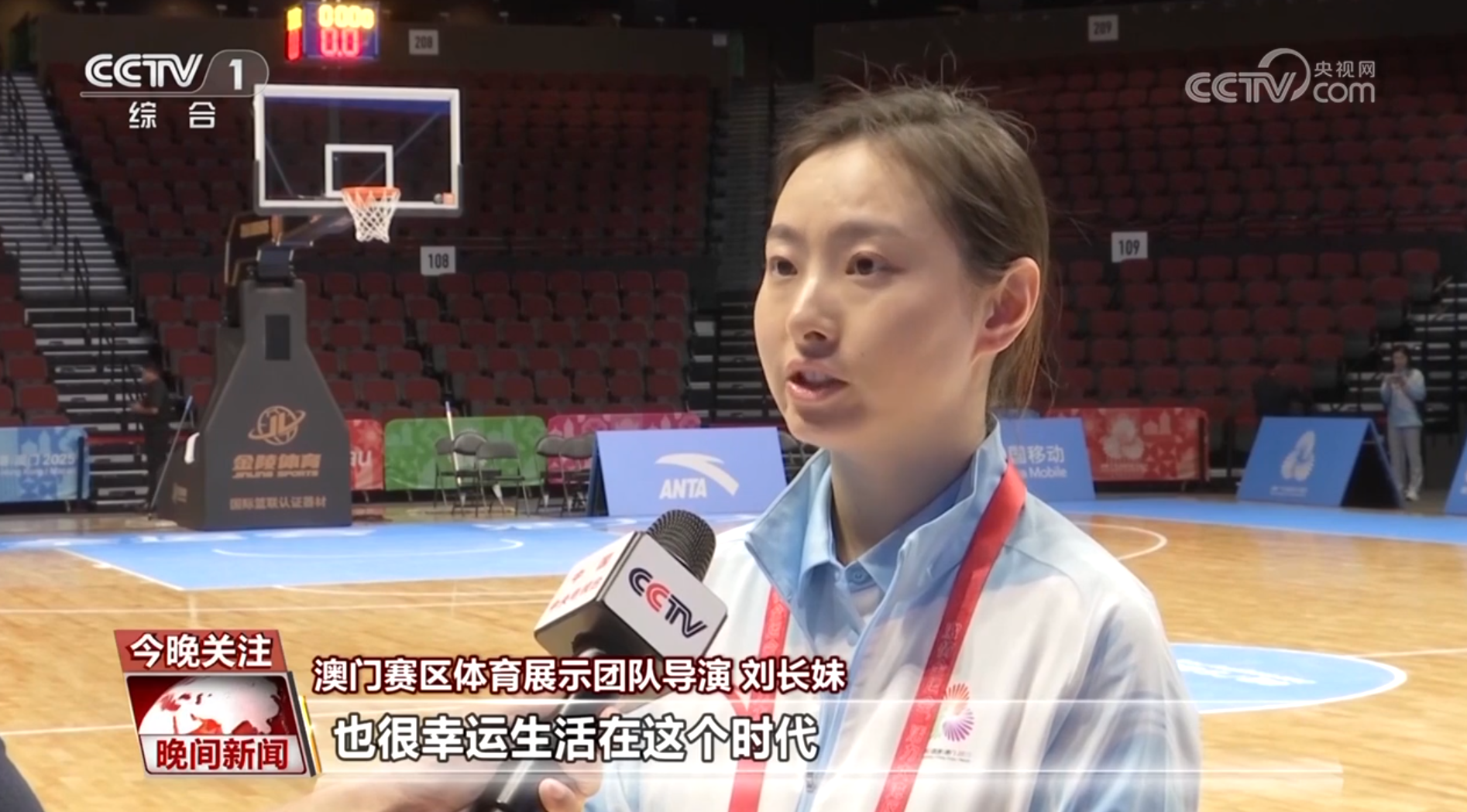 籃球比賽的攻防轉換常常在24秒內完成,而除了運動員們的精彩表現,現場的一個音樂節拍、一次恰到好處的互動往往也能讓賽場的情緒點燃。劉長妹帶領的團隊,就負責澳門賽區兩個籃球場館的體育展示。