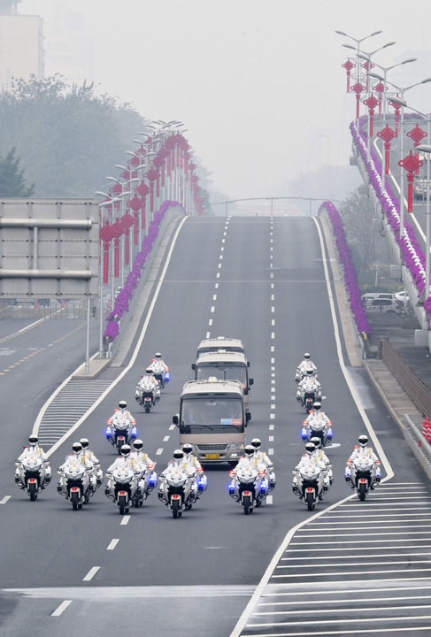2024年9月29日,中華人民共和國國家勳章和國家榮譽稱號頒授儀式在北京人民大會堂隆重舉行。這是國家勳章和國家榮譽稱號獲得者集體乘坐禮賓車,由國賓護衛隊護衛前往人民大會堂。新華社記者 高潔 攝