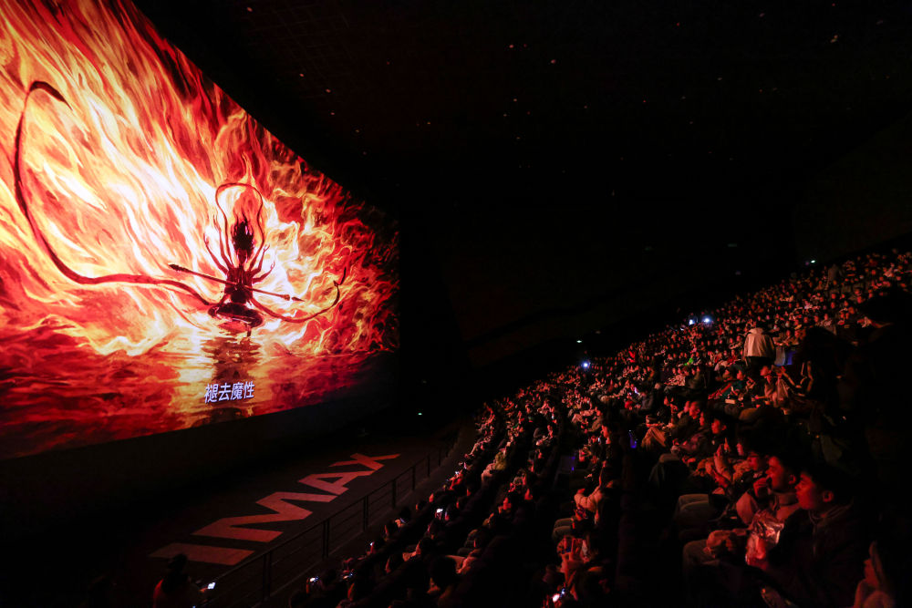 2025年2月25日,觀眾在貴陽越界影城IMAX影廳內觀看電影《哪吒之魔童鬧海》。2025年,國家電影局等相繼啟動「跟着電影品美食」「跟着電影去旅遊」「中國電影消費年」等活動,發揮電影對提振消費的積極作用;各地通過發布觀影消費券、舉辦主題活動等形式推動影旅融合,發展票根經濟。今年9月發布的《關於擴大服務消費的若干政策措施》提出,進一步支持有條件的地方以優質演藝、動漫、游戲、影視作品等線上流量帶動線下場景創新。