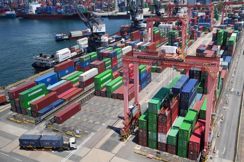 這是5月22日拍攝的香港貨櫃碼頭。新華社記者 陳鐸 攝