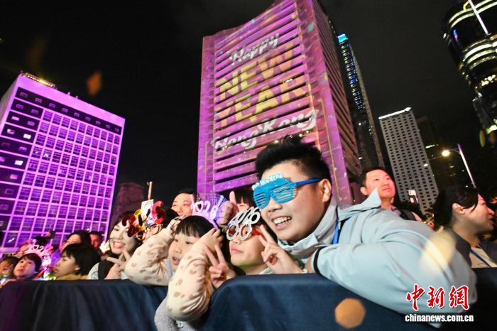 2025年12月31日晚,在香港跨年倒數活動上,中環8座大廈的外墻展示巨型倒數時鐘,並展示以「新希望·新開始」為主題的光影圖案,向本地及全球觀眾送上祝福。中新社記者 李志華 攝